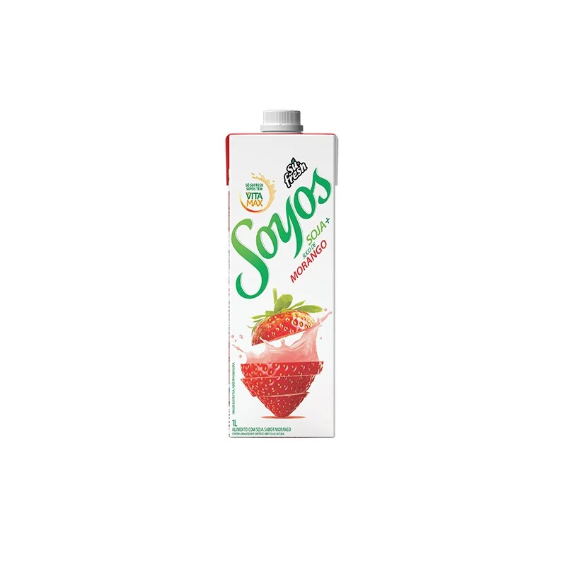 O sabor inconfundível do morango, com os importantes nutrientes da soja. Assim é o Soyos de Morango, delicioso e nutritivo.